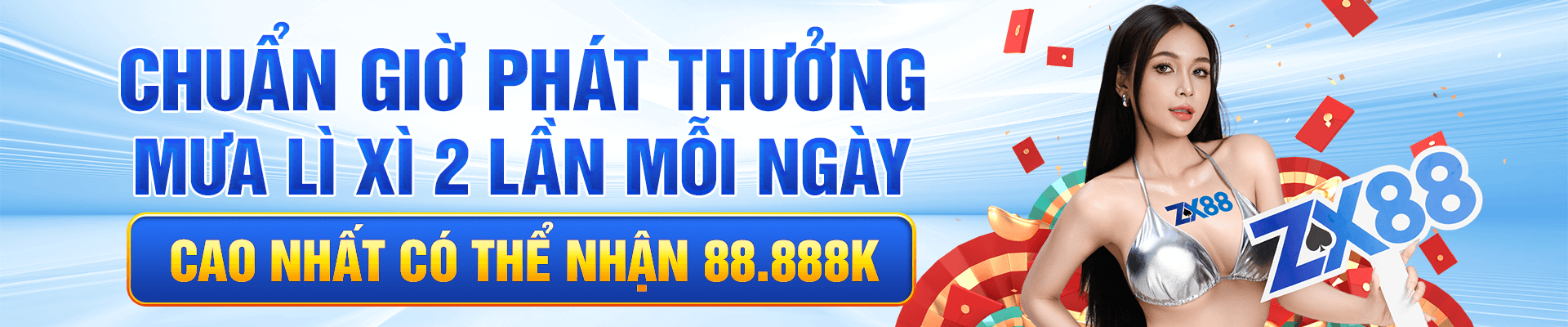 Nhà cái ZX8805 mang đến loạt khuyến mãi siêu khủng dành cho mọi thành viên, nổi bật nhất là cơ hội nhận thưởng giá trị lên đến 88,888,888K khi tham gia các sự kiện đặc biệt. Người chơi mới được tặng thưởng nạp đầu cao, trong khi thành viên lâu năm hưởng hoàn cược thể thao – casino hằng ngày, ưu đãi slot – bắn cá và vòng quay may mắn giá trị lớn. Hệ thống còn tặng giftcode theo tuần, điều kiện dễ nhận, rút thưởng nhanh, giúp người chơi tăng vốn và trải nghiệm cá cược hiệu quả hơn.